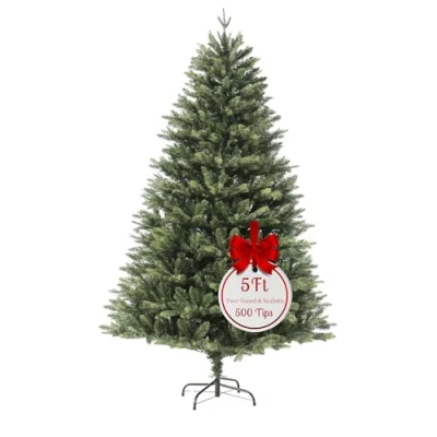 Evre Christmas Green Tree PE+PVC Metal Stand & Auto Struction 5ft