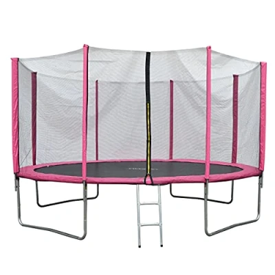 Evre Outdoor Trampoline with Safety Net, Padded Poles and Ladder in Blue or Pink 8 10 12 14 Ft (Pink, 14Ft)