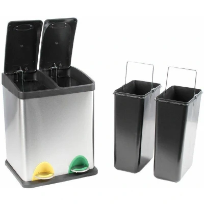 Evre Recycling Bin with Lids for Kitchen / 16 Litre Capacity 2 Compartments Waste Separation (16L (8L+8L)) Silver