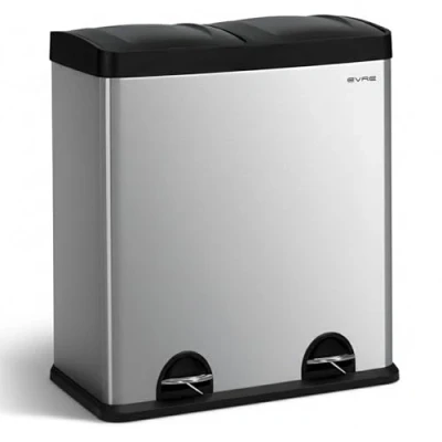 EVRE Stainless Steel Waste Separation Recycling Bin With Removable Multi Compartments For Kitchen Office Living Room (60L (2x30L Compartments))