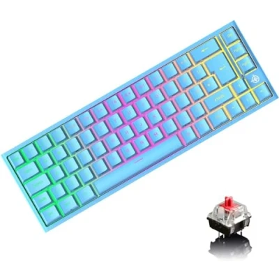 EWEADN MK26 UK Layout 60% Gaming Keyboard, 22 RGB Chroma Backlit, Linear Red Switch Mechanical Compact 67 Keys USB Wired Light Up Gamer Keyboard with Side Engraved Keycap for PC/Mac Blue