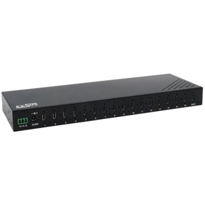 Metal USB 3.2 Hub with 16 USB-C Gen 2x1 Ports 15 kV ESD surge protection for each output Up to 2.4A per port Automatic detection of data transfer rate Metal enclosure for wall or rack mounting