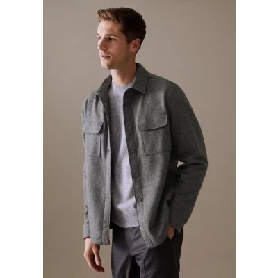 EX Autograph Mens Wool Blend Overshirt Stormwear Casual Smart Shirt (UK, Alpha, M, Regular, Grey)