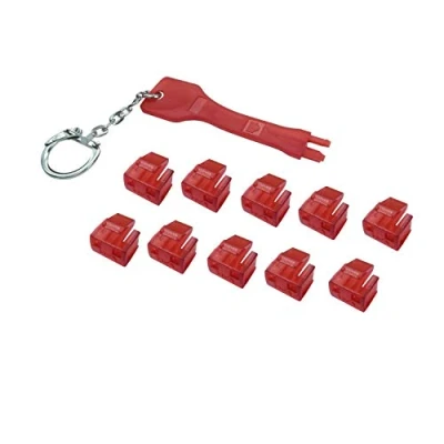 1 Key + 10 Port RJ-45 Blockers Keeps networks and RJ-45 ports safe from tampering, Safe from Devices been inserted or prevent from use. Can not be removed without the key. Blocks physical access to an RJ-45 and protects. Simple to install, simple to remove. Wide range of packs and Keys packs available