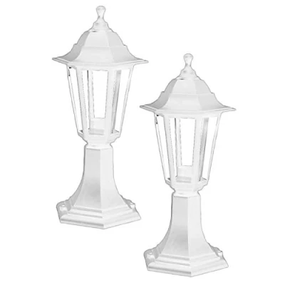 Ex Pro Traditional Style IP44 Rated White Outdoor Garden Post Top Lamp Lantern Light, E27 Fitting 2 Pack