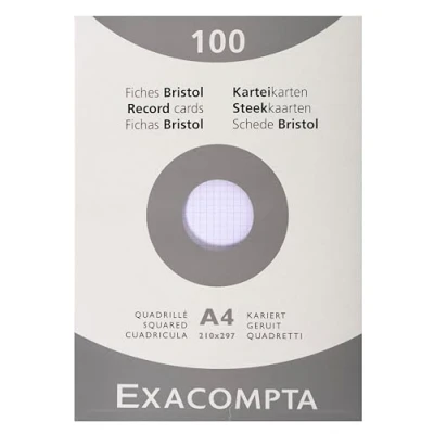 The BRISTOL of the Exacompta index cards is a Clairefontaine paper that is compatible with inkjet printers, laser and copiers PACKAGING: sliding sleeve to protect and store the files; each type of index cards comes in a different colour for easy to recognize and convenient to use Ruling: squared 5x5 unperforated; size: 210 x 297 mm; colour: white Robust and practical, the index cards allow for versatile use and a high level of writing comfort, they are perfect for your practical work, note cards. Production: 100% in France, raw material and final product are from the factories of the Exacompta Clairefontae group, PEFC certification