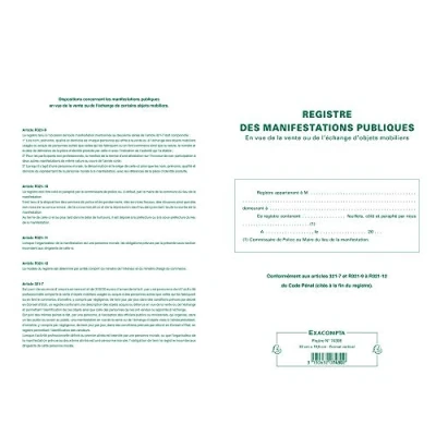 32 x 19.5 cm in size Made from 110 g Clairefontaine Paper 80 Pages Suitable for recording vendor details when holding public demonstrations of sale of goods Pre-printed pages