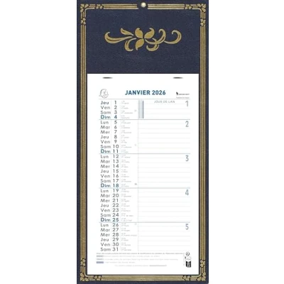 12 detachable monthly sheets, with the indication of school holidays, Sundays and public holidays are printed in red for easy spotting, room to write on each day The advantages: the accuracy of the saint of the day, the number of the week is clearly visible. Practical: the perforation for hanging the calendar on the wall Certifications: PEFC (paper fibres from sustainably managed forests) - Green print (environmentally friendly printing) Born in the Vosges, made in France and designed for you
