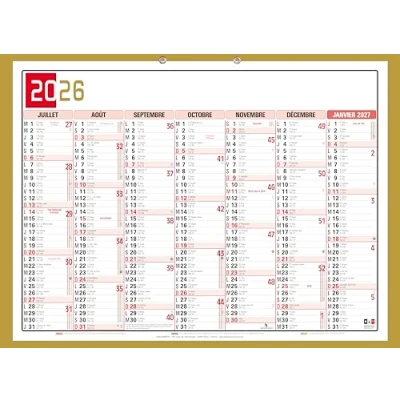 Exacompta 34101E Tricolour Semi Annual Calendar 55 x 40.5 cm January 2026/2027 Red, Black and Gold