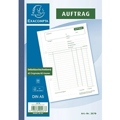 Order form for shops, distribution, layouts/Next To industry, hand even through order form with colourful with Carbonless Copy, A5, in Praxisorientierter, übersichtlicher uses. With signature strip for the customer. Printed first and second page. Each sheet with more user-friendly filing holes for an ultra-fine perforation for easy removal. Set of forms with durable special spine glue and desk mat FSC-certified: paper from responsible sources
