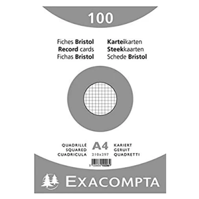 Exacompta Ref 10206E Bristol Squared Record Cards (Pack of 100) A4 in Size, 205gsm Card, Compatible with Printers Suitable for Exam Revision & Notes White
