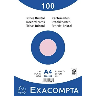 Exacompta Ref 10236E Bristol Squared Record Cards (Pack of 100) A4 in Size, 205gsm Card, Compatible with Printers Suitable for Exam Revision & Notes Pink