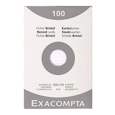 Exacompta Ref 13202E Bristol Squared Board for Printing (Pack of 100) 100 x 150mm in Size, 205gsm Card, Compatible with Printers Suitable Exam Revision & Notes White