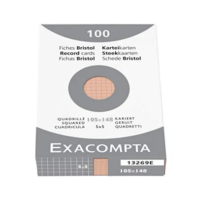 Exacompta Ref 13269B Bristol Squared Record Cards (Pack of 100) A6 in Size, 205gsm Card, Compatible with Printers Suitable for Exam Revision & Notes Orange
