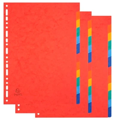 Exacompta Ref 1412SE Pack of 3 Sets dividers Made Genuine Soft Glossy Card 225 g/m2 FSC® with 12 Neutral tabs File Size A4 Dimensions 22.5 x 29.7 cm Assorted Colours