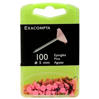 Exacompta Ref. 14508E 1 Box of 100 plain flat head pins Point height 8mm 5mm diameter Pink