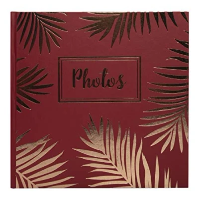 This photo album is 32 x 22 cm in size, has 50 plain black pages and can hold up to 100 photos or polaroid prints The album comes in clear display box to keep your memories protected from dirt and dust The plain black paper means this product would be ideal for creating scrapbook style pages Photos can be placed into the albums using adhesive corners, pads or glue Thick red cover with a trendy rose gold marking and palm leaf motif with the word 'Photos' in the middle of the page