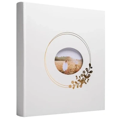 Design and window around the country/floral wedding theme, with the elliptical shape design and golden flowers Cover: white PU effect material with gold marking and oval customisation window with visual in accordance with the theme Quality: the inner pages of the album are made of very high quality rigid white card 250 g for excellent preservation of the pictures, even when gluing on both sides thanks to its protective crystal sheets Capacity: 300 photos 10 x 15 cm - 60 white pages Size: 29 x 32 cm - book album - Manufacturing: the design of the album is created in Paris and this highly ecological product is 100% made in our factories in France