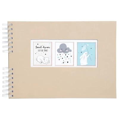 Discover our scrapbooking kit specially designed to create children's photo albums, with playful and colourful accessories, perfect for capturing and celebrating every precious moment of their childhood This kit consists of: a 32 x 22 cm spiral bound album with 50 white pages made of high quality paper made in France and FSC certified that guarantees excellent conservation of shots and very good writing comfort. It also has a personalisation window that allows you to dress the cover with a photo that is particularly close to your heart; its total capacity is 210 3.9 x photos. 15 cm 8 pastel coloured markers that will allow you to draw or write as you like; each pen has two tips so you can draw fine or thick lines Two sheets of stickers in classic pastel colours to match the felt-tip pens A set of two stencils with a sheet of geometric patterns and a sheet of children's motifs plus a set of two sheets of white photo corners with a total of 48 pieces