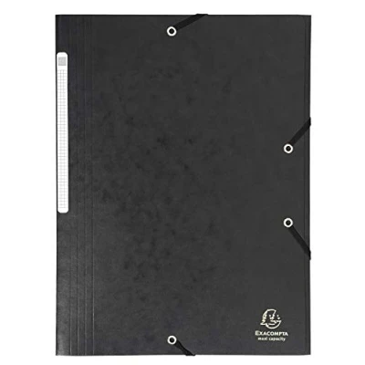 Exacompta Ref 17116H Elasticated 3 Flap Folder 240 x 320mm in Size, Suitable for Storing A4 Documents, 425gsm Laminated Card, FSC Certified Black (Pack of 25)