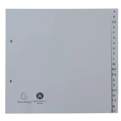 Exacompta Ref 1723B Box of 25 Indexes Printed Alphabetical PP Recycled Grey A Z (German Alphabet) 20 Positions 2/3 A4