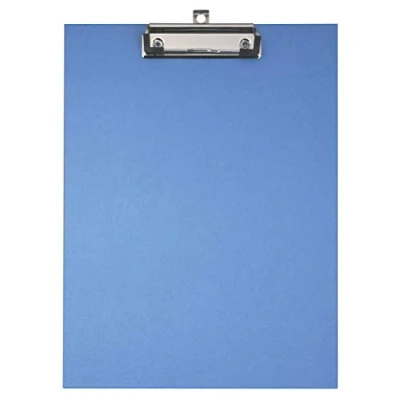 This clipboard is made of sturdy cardboard It is rigid enough to allow note taking in any situation The metal clip has plastic corners to prevent tampering with documents. Equipped with an eyelet that allows you to hang the clipboard on a wall hook Size 23 x 32 cm for A4 documents Easy to use, it can be carried anywhere for writing on loose sheets or on a pad FSC certified and blue angel - Sold in boxes of 10 - Colour: blue
