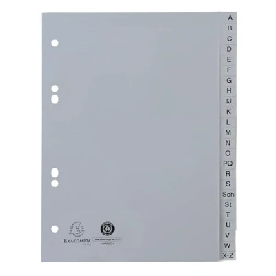 Exacompta Ref 1743B Box of 25 Printed Alphabetical dividers Recycled PP Grey A Z (German Alphabet) 24 Positions A5