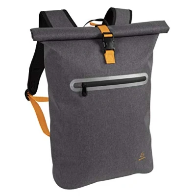 Made from a waterproof thermoplastic polyurethane to withstand severe weather, especially when travelling by bike or motorbike Seamless to preserve the watertightness of the pockets and zips The inside of the bag is equipped with a reinforced and closed pocket suitable for laptops and tablets up to 15.6 inches in size External welded pocket to preserve water resistance, with a reflective grey edging The dimensions are 33x49x14cm and it has a reinforced plastic clip closure and adjustable shoulder straps. The bag is storm grey with a black and grey interior with orange accents