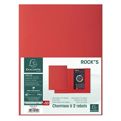 Exacompta Ref 216012E Rocks Collection 2 Flap Folders 240 x 320mm in Size, Suitable for A4 Documents, 210gsm Material, Fold Over Flaps Red (Pack of 50)