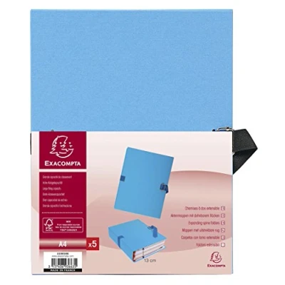 Exacompta Ref 223020E Expanding Folder 240 x 320mm in Size, Suitable for Storing A4 Documents, Expands Up To 13cm , Coloured Canvas with Matching Strap Light Blue (Pack of 5)