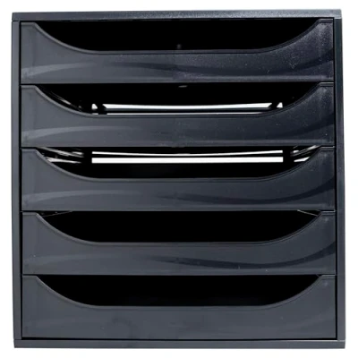 Exacompta Ref 229014D ECOBlack Ecobox+ Drawer Set 348 x 284 290mm in Size, Suitable for A4+ Documents, 5 Drawers, Safety Stop Feature, Stackable Black