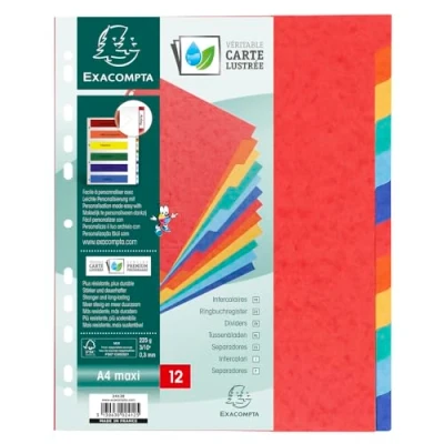 A4+ in size Made from 225gsm lightweight pressboard Pre-punched so they can be inserted into most files and folders Comes with 12 parts FSC Certified - This product promotes responsible and sustainable forest maintenance across the world ISO 9706 - This product is measured and guaranteed against aging. ISO 9706 products are guaranteed for 100 years