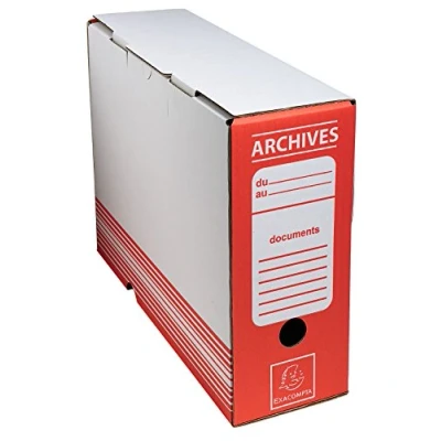 Exacompta Ref 261009H Archive Box Suitable for A4 Documents, Label on Vertical & Horizontal Sides, Finger Hole Easy Removal, Protective Flap Red