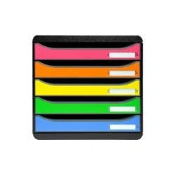 Exacompta Ref 309798D BIG BOX PLUS Desktop Drawer Set 5 x 43mm Drawers, Suitable for A4+ Documents, 347 278 271mm, 100% Recycled Plastic Black/Multi