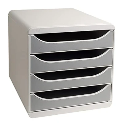 Exacompta Ref 310041D BIG BOX Desktop Drawer Set 4 x 55mm Drawers, Suitable for A4+ Documents, 347 278 267mm, 100% Recycled Plastic Light Grey/Stone Grey