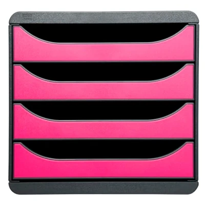 Exacompta Ref 310784D BIG BOX Desktop Drawer Set 4 x 55mm Drawers, Suitable for A4+ Documents, 347 278 267mm, 100% Recycled Plastic Black/Raspberry