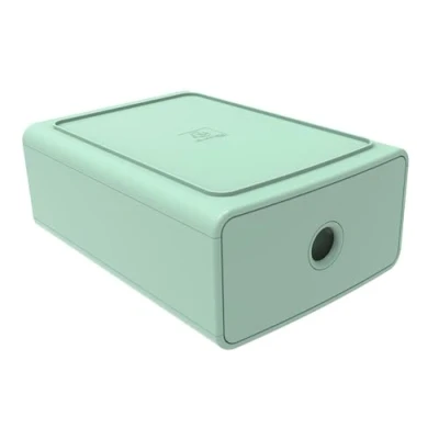 The Tiny Box filing module, very versatile, offers 1 stackable and modular storage drawer for filing A5+ documents, utensils etc. The cabinet is designed in one block. This makes it more resistant, ultra rigid and durable It is also stackable thanks to the 4 reliefs that ensure the stability of the boxes. The drawer is comfortable to use, sliding and quiet, equipped with a safety stop stop. External dimensions: Depth 19 x Width 26.5 x Height 10 cm 25 year guarantee - Sage green colour