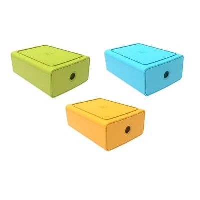 The versatile Tiny Box filing module offers 1 stackable and modular storage drawer for filing A5plus documents, utensils etc. The cabinet is designed in one block; it is thus more resistant, ultra rigid and durable It is also stackable thanks to the 4 reliefs that ensure the stability of the boxes; the drawer is pleasant to use, sliding and quiet, equipped with a safety stop External dimensions: Depth 19 x Width 26.5 x Height 10 cm The front is closed to keep its contents dust-free Age 25 - Assorted Colours - Sold in cardboard x3