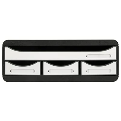 Exacompta Ref 3197213D Toolbox Mini 4 Drawer Set Suitable for A4+ Documents, Stackable, Enter Documents Without Opening, Safety Stop on Drawers Glossy Black