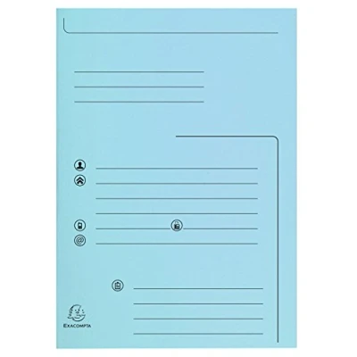 Exacompta Ref 334006E Super 210 Printed 2 Flap Folders 240 x 320mm in Size, Suitable for Holding A4 Documents, 210gsm Card, Pre Light Blue (Pack of 25)