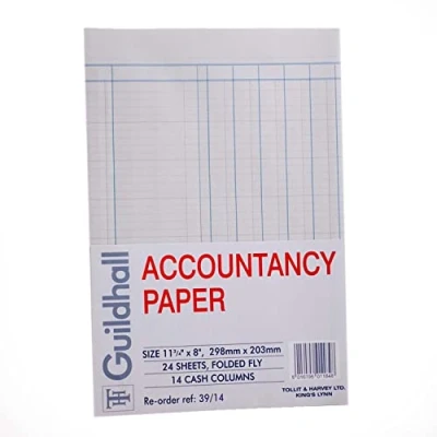 Exacompta Ref 39/14Z Guildhall A4 Accountancy Paper, 298 x 203mm, 24 Sheets of Faintly Ruled 95gsm Ledger Quality 14 Cash Columns, Loose