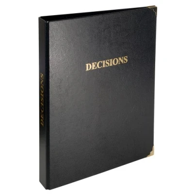 A4 paper with a weight of 80 g. Refill 100 blank and leafy sheets with customizable “Decisions” cover + 2 neutral inserts. 4 ring binder with metal corners and gold printed title on the cover and back of the binder.