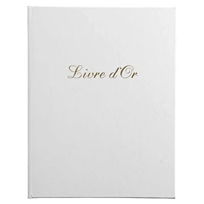 Chic and classic with its imitation leather cover, this quality guest book will allow you to keep the most beautiful memories COVER: Faux leather - Colour: white - Title in gold letters - Inside block with gold edge QUALITY: the inside pages are made of high quality white Clairefontaine 110g/m² paper, a real pleasure to write on CAPACITY: 100 plain white pages - Vertical format 27 x 22 cm MANUFACTURING: Product made in Paris - Packed in a crystal gift box