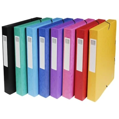 Exacompta Ref 50400E Elasticated Filing Boxes 240 x 320mm in Size, Suitable for A4 Documents, 40mm Spine with Label Assorted Colours (Pack of 8)
