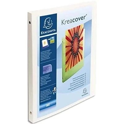 Opaque PP exterior - Thickness 5/10th - 1 transparent A4 pocket to personalize the front cover FILING CAPACITY: between 100 and 150 sheets of 80g paper MECHANICAL: 4 round rings diameter 15 mm - Back 20 mm FORMAT: 320 x 250 mm - Format to file: A4, suitable for filing sheets, perforated pockets and dividers Easy to personalize with KREAMAN on the Exacompta website - Made in France Colours: white