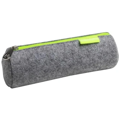 NEON Round Pencil Case – Space-Saving and Large Capacity Material: soft and pleasant to the touch - felt made from recycled water bottles (PET) CLOSURE: Neon yellow zip - easy to open and close SPACIOUS: It can hold a double decimeter ruler, a small pair of scissors, pens or felt-tip pens Dimensions: 21.5 x 7 cm. Colour: grey