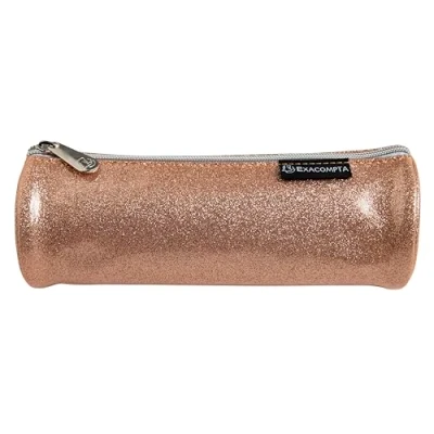 EXACOMPTA Ref. 52770E 1 Round Glitter PU Faux Leather Pencil case Lined with Polyester Dimensions 22.5 x 8 cm Random Colours Blue, Grey, Black or Nude