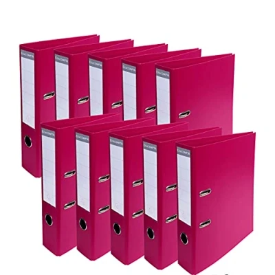 Features: Prem'Touch quality lever mechanism, with edge protection, with eyelets, with finger hole ring, replaceable spine label (can be written on both sides), PP film on the outside and inside Format: for DIN A4 MAXI Capacity: approx. 600 sheets (80 g/m²). Spine width: 8 cm Length/width/height: 30 x 7 x 32 cm (per folder) Colour: raspberry, pack of 10