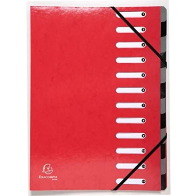 Exacompta Ref 53925E Iderama Collection Harmonika Multipart File 245 x 320mm in Size, Suitable for A4 Documents, 12 Multicoloured Tabbed Sections Red
