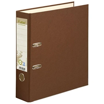 A purely ecological folder: made from recycled material Vibrant colors in 2 shades inside and out Label on the back for easier identification of contents. Finger hole and metal reinforced corners The Prem Touch mechanism is very robust and easy to handle thanks to the push button. Reinforced edges for durability. 32 x 29 cm, spine 80 mm, 1 piece, colour chocolate